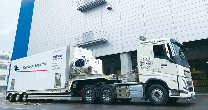 2024年度には、年間約900トンの半導体製造装置を輸送しました。ダメージ発生率は0.5%未満を維持し、納期遵守率も高水準を継続しています。お客さまからは「信頼できる輸送品質」との評価をいただいています。