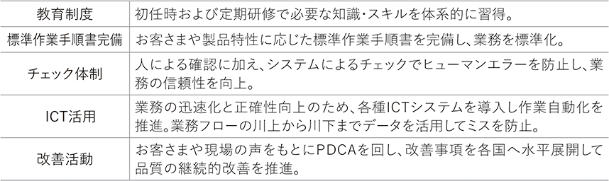 当事業本部では、輸送品質を維持・向上させるため、組織的な体制を整えています。以下の取り組みを通じて、品質の確保と継続的改善を推進しています。