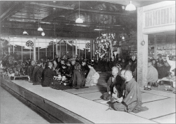 福岡市が誕生した1889(明治22)年、父(與三郎と改名)の還暦を機会に、23歳の與八郎は紙与本家の当主となり與三郎の名を継ぎました(父は輿一と再改名)。與三郎は1898(明治31)年に與八郎と再改名して家業発展に励む傍ら、小野派一刀流の指南役になるほど剣道場(一到館)に通い「兵法」と「武」の精神に学んで、広い視野と先見能力を身につけていきます。兵法の極意も商法のそれも原理が同じである事を悟り、兵法虎の巻「六韜三略」の極意“争わずして克つ、これ上の上なるものなり矣”を自戒とし金科玉条としました。一到館道場の先輩には平岡浩太郎(炭鉱主・玄洋社初代社長)や磯野七平(鋳造業・二代目福岡市長)らがおり、中野正剛・緒方竹虎らのちに政治家となる面々も同門でした。道場を通じて人脈と視野を広げていった事は容易に想像がつきます。