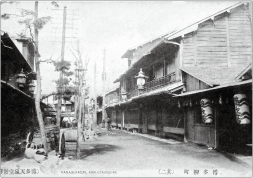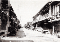 さらに1909(明治42)年、工科大学の開設と医科大学を含む帝国大学への昇格問題が起こります。医科大学の帝国大学昇格に関して「隣接する地に遊郭があることは風紀上好ましくない」旨の通達を受けて、與八郎は柳町遊郭(50楼閣・約千人、現在の博多区大博町・石城町付近にあった)の移転問題に奔走します。大吉楼の経営者・池見辰次郎が楼主側の代表となり與八郎に協力し、住吉村高畑(渡邊家の所有地、現在の中央区清川)に遊郭をまるごと移転させることで解決しました。1910(明治43)年12月限りで大移動が実現。1958(昭和33)年の赤線廃止により遊郭街は消滅しましたが、「柳橋」の名称に遊郭の名残りが遺っています。