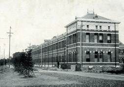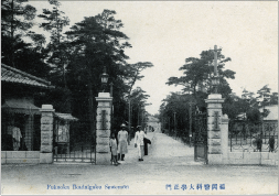 1900(明治33)年、渡辺與八郎は福岡医科大学(現在の九州大学医学部)誘致に際し、真っ先に運動資金を寄付。これにより地元での誘致運動が活発になり、当時福岡市よりも規模が大きく優位な条件が揃っていた熊本や長崎に競り勝つことに繋がりました。医科大学は、当時東中洲にあった県立福岡病院を「京都帝国大学福岡医科大学」と改称することで設置が公布され、1903(明治36)年4月に開校しました。産業の無い福岡市にとって、大学誘致はその後の都市発展の基礎となったのは言うまでもありません。與八郎は苦学生に無償で奨学金を援助するなど、将来の人材育成にも熱心でした。