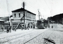 遡って1906(明治39)年に小倉ー黒崎間などの軌道特許を出願した八幡馬車鉄道(同年、八幡電気鉄道と改称)の設立を與八郎は富安保太郎(銀行業・山門郡)や伊藤伝右衛門(大正炭鉱・嘉穂郡)らと先導します。翌1907(明治40)年9月、松方幸次郎ら関西財界の実業家が計画していた門司電気鉄道(門司ー小倉間の軌道特許を取得)と八幡電気鉄道の計画が、門司電気鉄道の発起人が八幡電気鉄道の発起人に加わる形で合併一本化され、九州電気軌道(西日本鉄道の前身、のちの西鉄北九州線)が誕生。與八郎はここでも表面に出ることを避けて役員にはならず、福岡側の有力発起人として創立常務委員になり計画をまとめています。