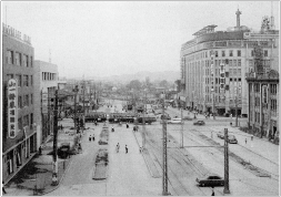 中でも天神町の福博電気軌道線(現在の明治通り)と交差する「天神交差点」や「渡辺通り」沿線は未曾有の大発展を遂げて現在に至ります。與八郎の功績の中で最大の先見性は、天神交差点と「天神町停留所」を造ったことかもしれません。というのも、先に開業していた福博電気軌道には「天神町」停留所は存在しなかったからです。交差点が誕生し2つの軌道の乗り換え地点となった事により、官庁や学校しかなかった天神が繁華街への第一歩を記しました。「渡辺通り」という名称は、彼の功績を讃え彼の人柄を慕った人々が、彼の死後に名づけたものです。(終)