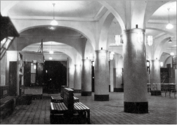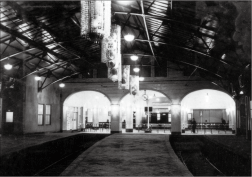 1935(昭和10)年2月、九州鉄道は福岡停留場(初代福岡駅)の土地600坪を岩田屋の関係会社である共栄土地建物に売却。岩田屋は阪急の小林一三の協力を得て、鉄道とデパートの相乗的な利用客増加を狙ったターミナル百貨店として1936(昭和11)年10月7日に開店しました。建物には九州鉄道の乗り場案内が掲示され、1階に乗降客出入り口や通路を設置されましたが、福岡停留場(二代目福岡駅)は岩田屋開業前の3月29日に移転新築されました。