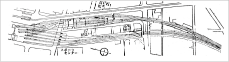 大牟田線福岡駅の高架化工事は、福岡市の戦災復興土地区画整理事業および都市計画街路事業に協力する形で始まりました。前者は天神町交差点から渡辺通一丁目までの道路(渡辺通り)を18mから50mに拡幅する計画で、大牟田線の福岡駅ー薬院新川間780mの線路を西側に60mほど平行移設するという内容。後者は都市計画街路松園ー西新間(国体道路)と平面交差する大牟田線の踏切を除去することを目的にしていました。