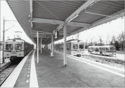 2006(平成18)年5月、香椎宮前ー香椎花園前の区間で連続立体交差事業が行なわれ、香椎宮前駅と西鉄香椎駅は高架駅となりました。反面、宮地岳線の輸送人員は1992(平成4)年度の1219万人をピークに減少し、2006(平成18)年度には714万人まで減少。特に西鉄香椎から津屋崎までの郊外区間の減少が著しかったことから、2007(平成19)年3月31日限りで西鉄新宮ー津屋崎間9.9kmが廃止され、残存区間は「貝塚線」に名称変更されて現在に至ります。