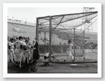 平和台球場の対南海戦、試合前の主力打者スナップ。大下、関口、中西、豊田の各選手。