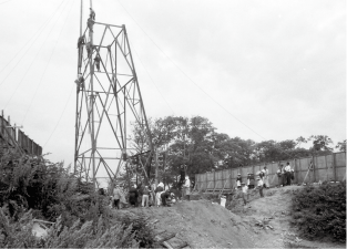 ナイター照明の設置工事 1954(昭和29)年5月 所蔵:西日本鉄道(株)