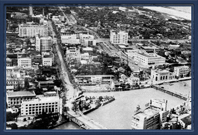 | 福岡ビル建設時の昭和通りと天神一帯 |