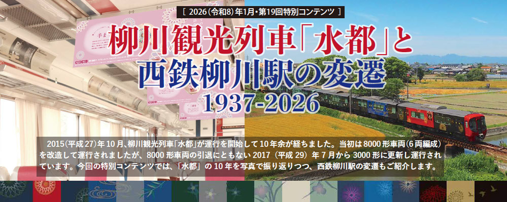 西鉄柳川駅は、2015(平成27)年3月21日に現在の橋上駅となり、東西自由通路が開設されました。同年秋、柳川観光列車「水都」が運行を開始し、西鉄と柳川市の協働により行った「西鉄柳川駅周辺整備事業」は2015年度のグッドデザイン賞を受賞しました。