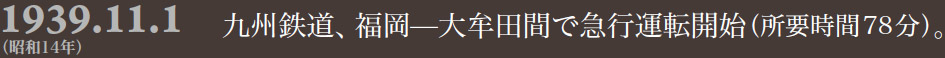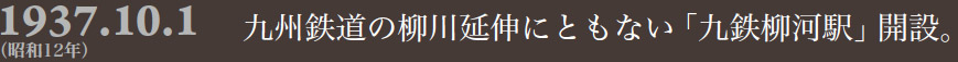 九州鉄道(現・西鉄天神大牟田線)は1939(昭和14)年7月1日に大牟田まで全通し、同年11月1日から福岡ー大牟田間で急行運転を開始しました。1942(昭和17)年9月22日、西日本鉄道の成立にともない九州鉄道線は西鉄大牟田線となり、九鉄柳河駅は西鉄柳河駅と改称されました。